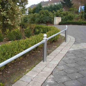 Standpfosten mit Kugelkopf für Rabattengeländer, Querholm Rundrohr, verzinkt / anthrazit