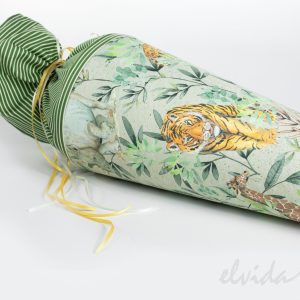Personalisierte Bio Schultüte aus Stoff Savanne Namensschild