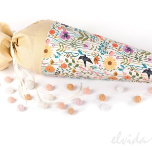Stoff Schultüte Blumengarten personalisiert Namensschild