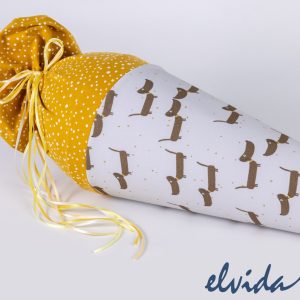 Personalisierte Bio Schultüte aus Stoff Dackel mit Namensschild