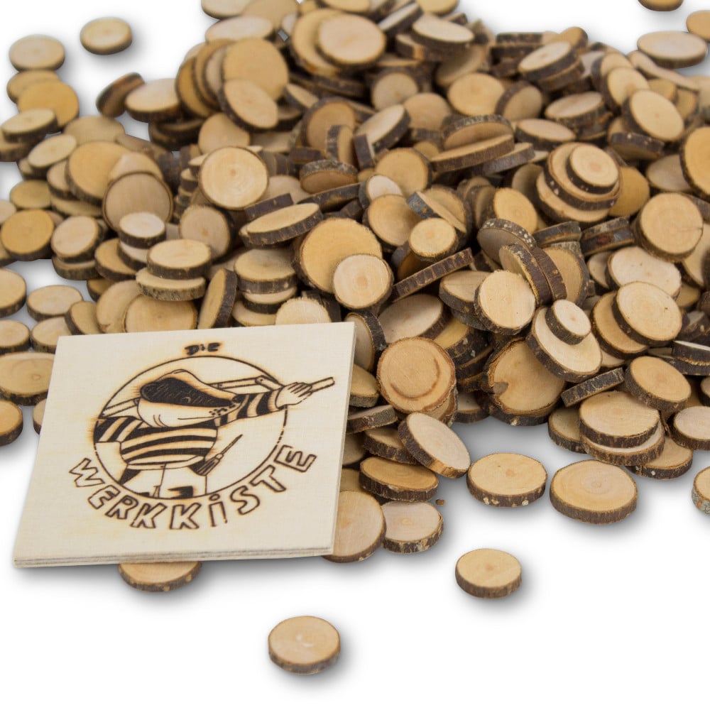 Diese Astscheiben haben ihre Rinde behalten und stellen dadurch eine tolle Möglichkeit für naturnahes Werken und Basteln dar. Sie sind prima geeignet für Untersetzer, Amulette oder Geschenkanhänger. Aber auch Tiere sollen mit ihnen schon gebaut worden sein, wie der Werkkiste berichtet wurde – der Fantasie sind also keine Grenzen gesetzt.