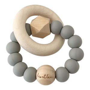 Dieser schöne Beißring aus lebensmittelechtem Silikon bietet auf beiden Seiten interessante Strukturen für endloses Kauen und Erforschen. Damit Sie nirgendwo ohne ihn hingehen, können Sie an der Aussparung einen Clip befestigen.