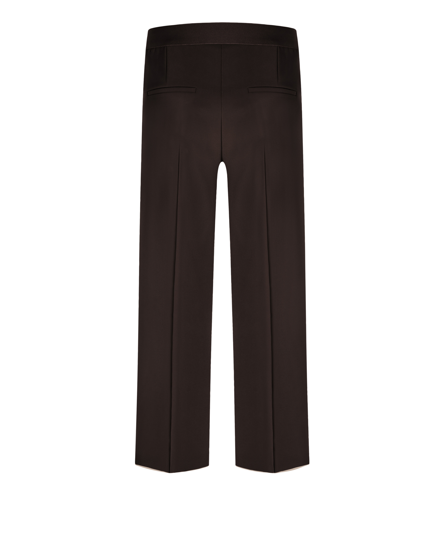 Cambio Hose “Cameron” Dark Ebony. Die Cambio Hose “Cameron” in der trendigen Farbe “braun” kombiniert klassischen Chic mit modernem Komfort. Mit ihrem leicht ausgestellten Bein und der verkürzten 7/8-Länge ist diese Culotte Hose ein wahres Allround-Talent – perfekt für den Business-Look oder auch für entspannte Freizeit-Outfits. Tragen Sie sie mit eleganten Pumps für einen professionellen Auftritt oder mit Sneakers und Sandalen für einen lässigen, sportlichen Look.