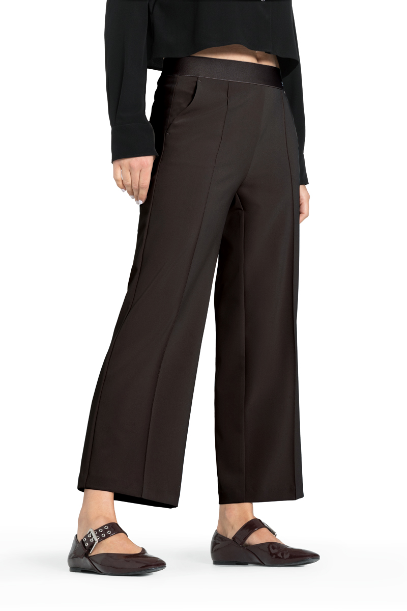 Die Wide Leg-Form sorgt für einen angenehmen Fall und eine besonders bequeme Passform. Durch den elastischen Bund und das Bi-Stretch-Material genießen Sie den ganzen Tag über höchsten Tragekomfort. Die leichte, elastische Qualität passt sich ideal an den Körper an und sorgt für Bewegungsfreiheit – ideal für die kommenden Jahreszeiten.