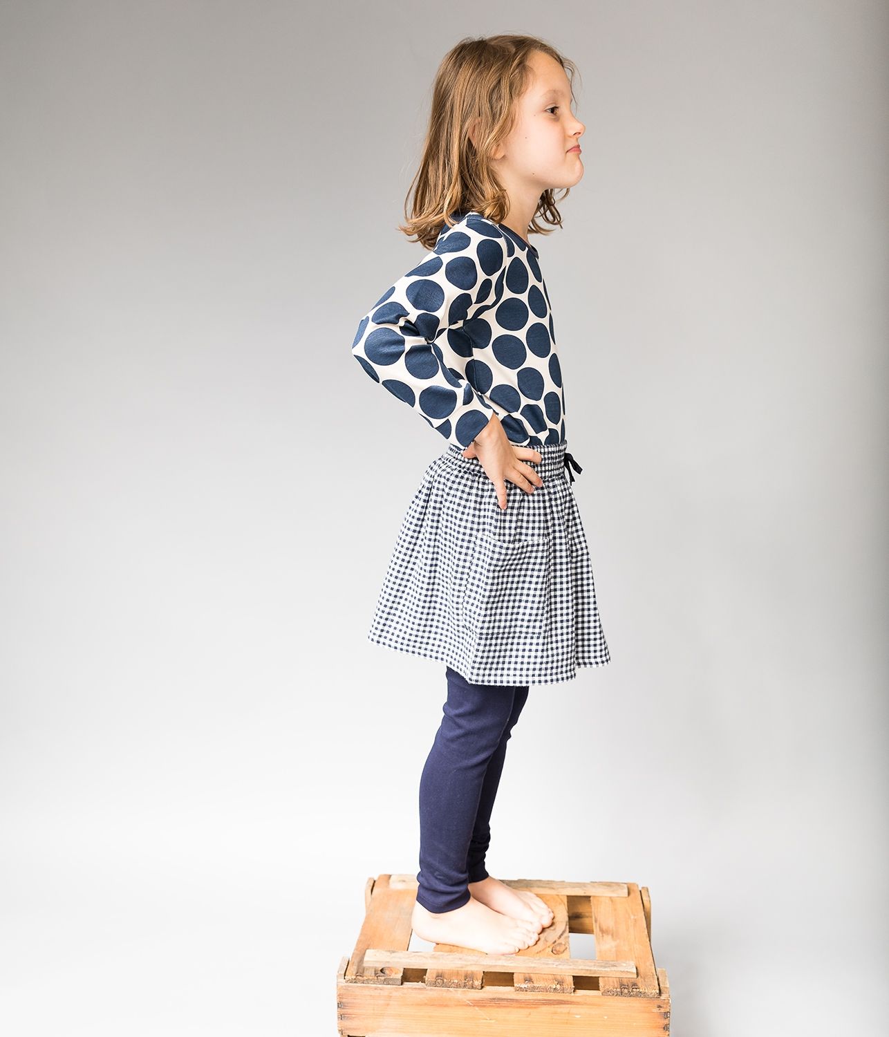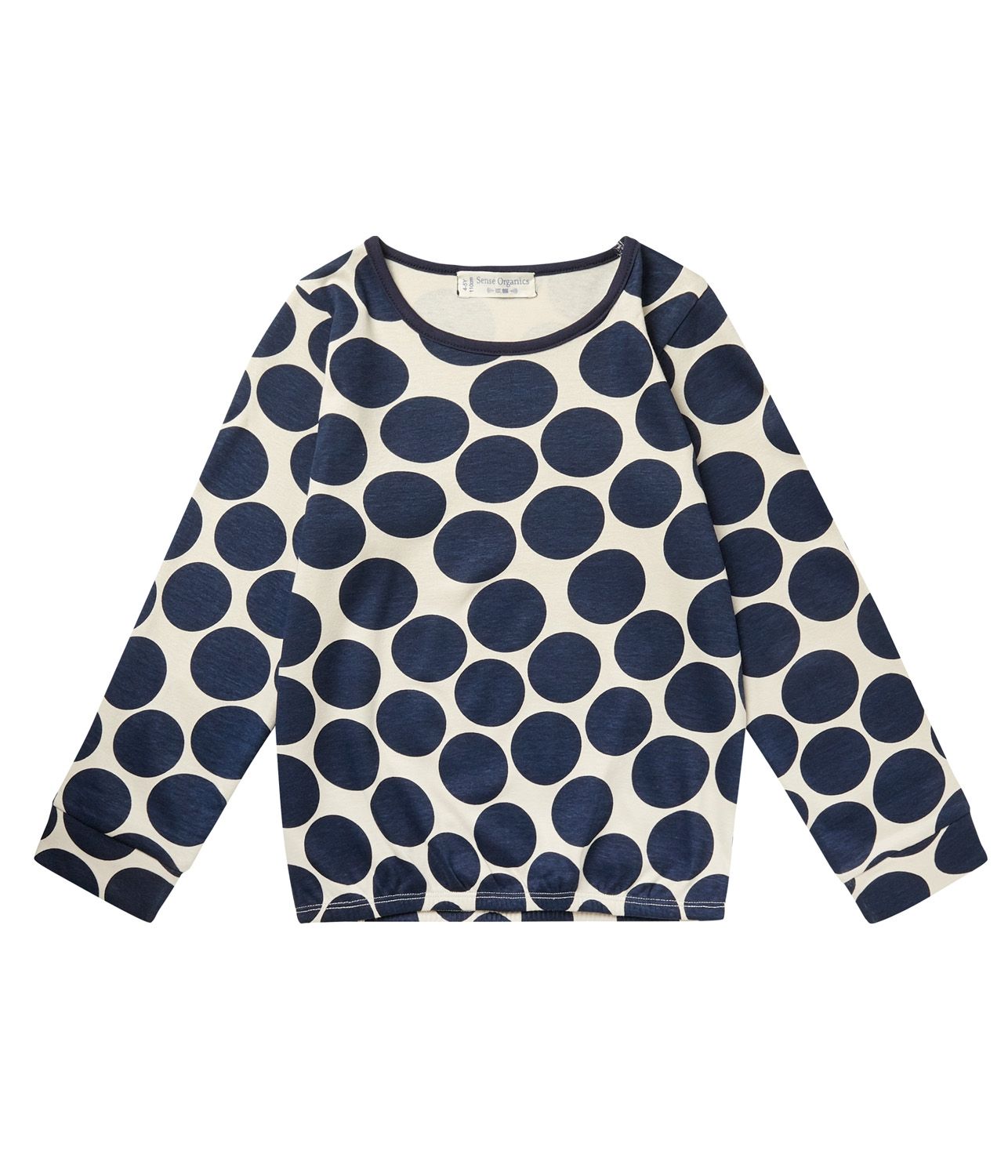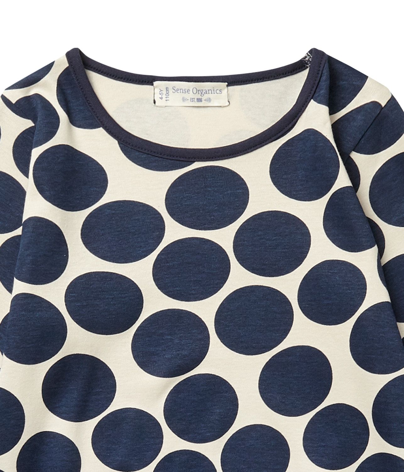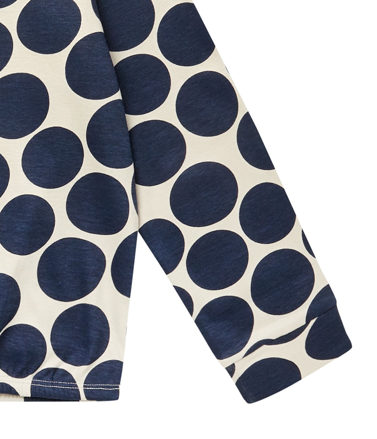 Das navyfarbene Langarm-Shirt in crème mit großen navyfarbenen Punkten ist aus