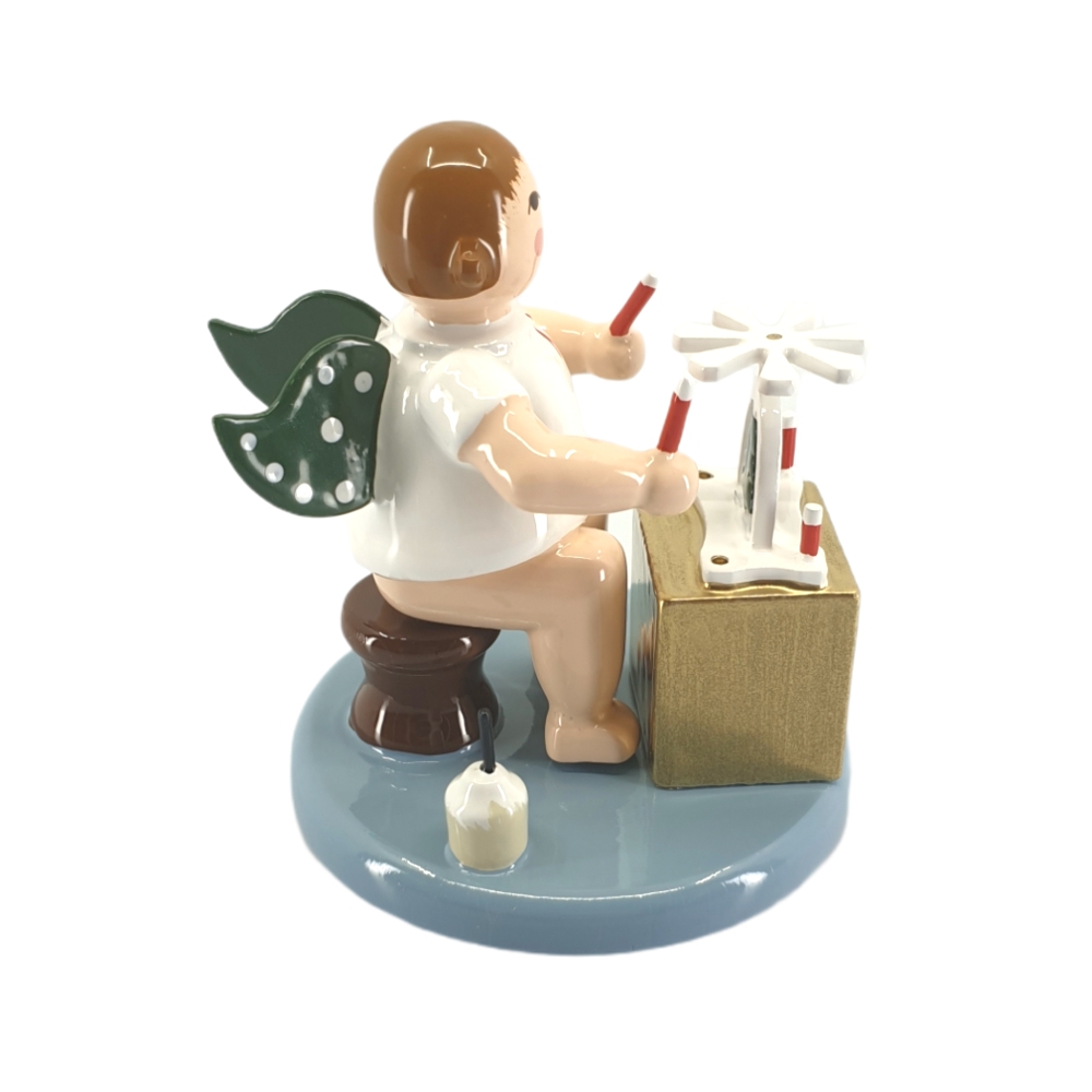 Dieser niedliche und zeitlose Engel mit Pyramide, sitzend, ohne Krone wurde im Hause Ellmann angefertigt.