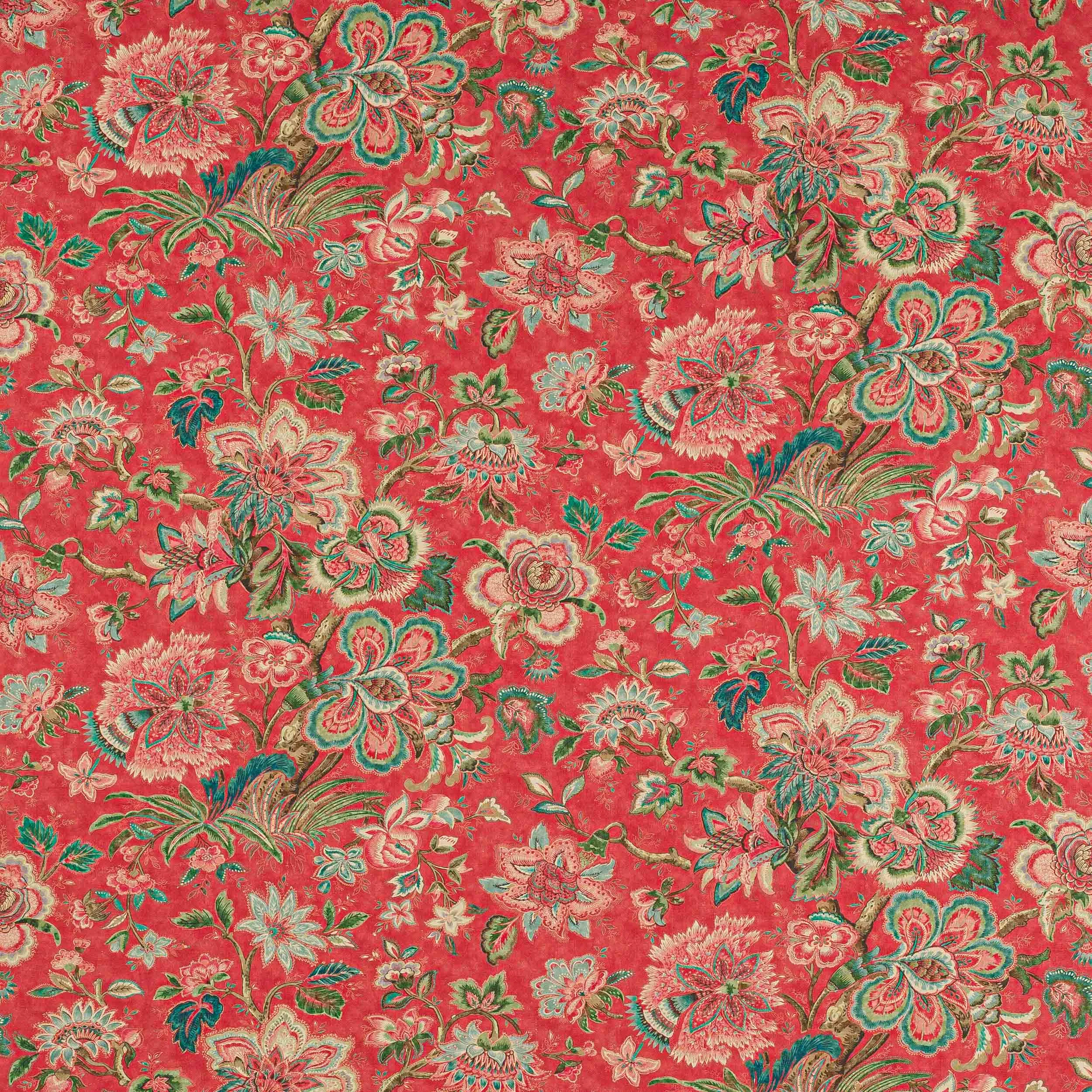 Flores ist ein farbenfroher Druck, der die ganze Komplexität und Detailgenauigkeit der im Blockdruck hergestellten Palampore- und indisch beeinflussten Textilien des 17. und 18. Jahrhunderts aufweist. Reichhaltige und abwechslungsreiche Farbkombinationen bringen die feinen Details dieses Musters gut zur Geltung. Flores ist ein dokumentarisches Erbe, das sich mühelos mit traditionellen und modernen Einrichtungen kombinieren lässt.