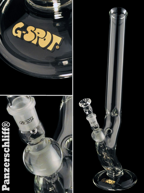 G-SPOT® High End Bong mit unzerstörbarem Panzerschliff Rohrdurchmesser: 50 mm Höhe: 500 mm Wandstärke: 5 mm Panzerschliff NS 18.8 3-teilig inkl. Kupplung und Steckkopf Goldenes G-SPOT® Logo Garantiert bei 560°C spannungsfrei getempert Borosilikatglas 3.3 nach DIN ISO 3585 Großer Scheibenfuß für optimalen Stand Kickloch