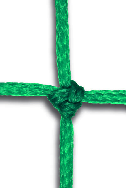 Handgeknotete Jugend-Fussballtornetze aus geflöchtenem Polyethylen, Maschenweite 145mm. Abmessungen: Breite 5,15m x Höhe 2,05m.