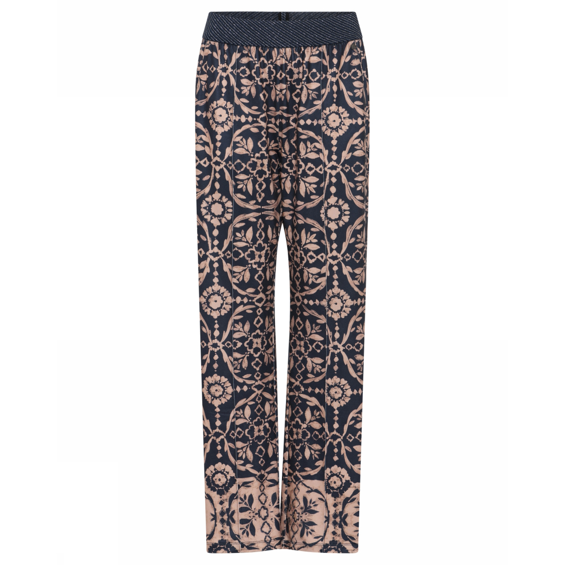 Gustav Denmark Hose “Marisa” Schwarz/Camel. Diese Hose von Gustav Denmark mit Gummizug ist eine schöne Jersey-Hose. Sie besteht aus einem weichen Polyester-Elasthan-Mix und hat einen elastischen Bund, der für zusätzlichen Komfort sorgt. Die Gustav Hose in einem tollen Print ist ein vielseitiges Kleidungsstück, das sich leicht zu einer schönen unifarbenen Bluse und einem Cardigan kombinieren lässt und ein lässiges, entspanntes Outfit vervollständigt.