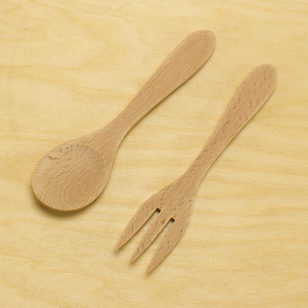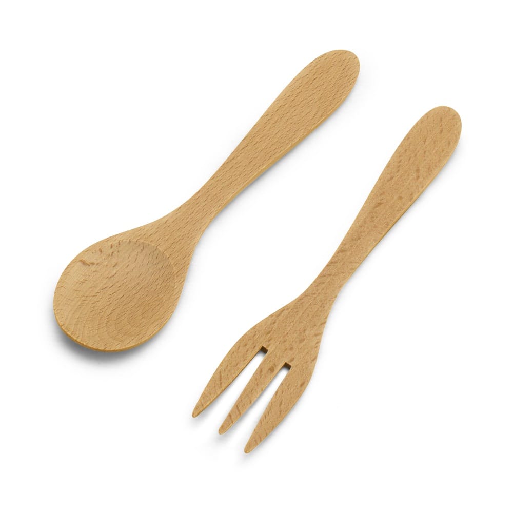 Bestehend aus einer Salatgabel und einem Salatlöffel aus Buchenholz