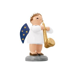 Im Mittelpunkt steht die Bergmannskapelle, bestehend aus drei Musikern in authentischen Uniformen. Ihre grünen Hüte mit roten Federn und die Instrumente – Trompete, Trommel und Posaune – machen sie zu einem detailreichen Blickfang. Die Szene wird durch eine verschneite Winterlandschaft und einen kunstvoll gearbeiteten Tannenbaum abgerundet, der eine besinnliche und festliche Stimmung verbreitet.