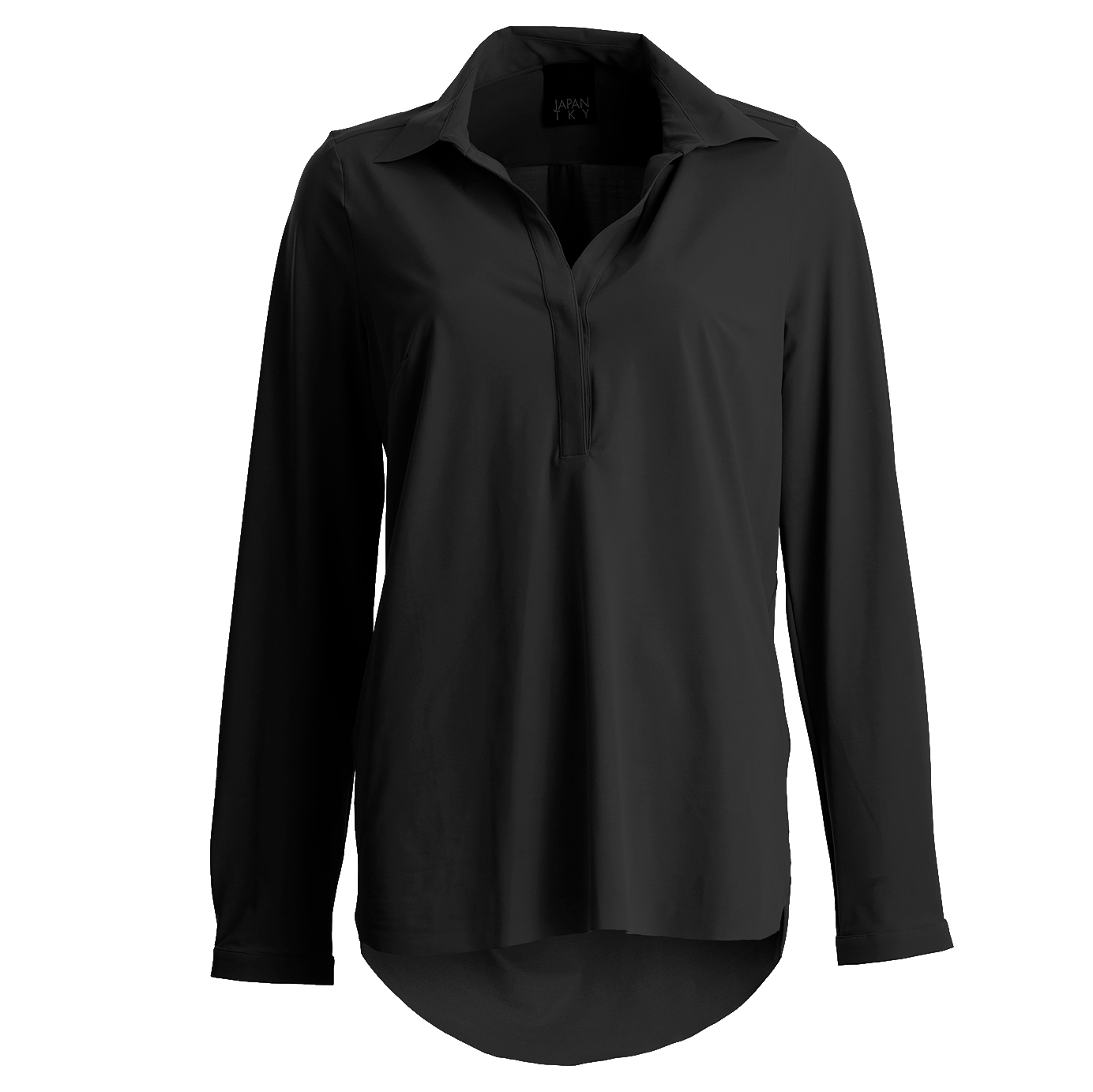 Japan TKY Bluse “Meky” Schwarz. Eine wunderschöne Bluse aus komfortablem Technostretch. Das Oberteil überzeugt durch seinen schönen lockeren Schnitt und lässt sich gut kombinieren.