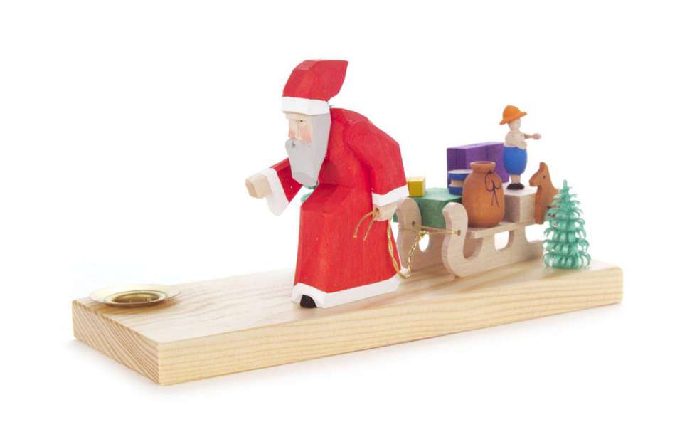 Kerzenhalter Weihnachtsmann mit Schlitten