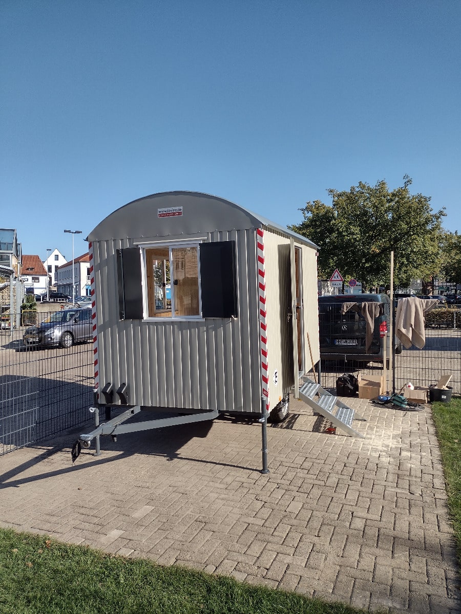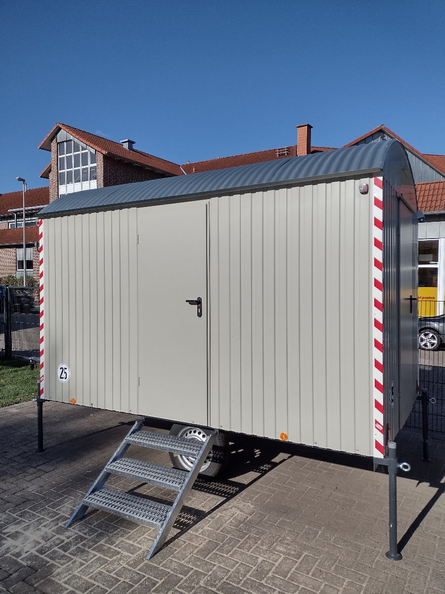 - Montage im Bauwagen: Der neue Bauwagen wird komplett aufgestellt und eingerichtet geliefert, so dass die Werkstatt direkt in Betrieb genommen werden kann.