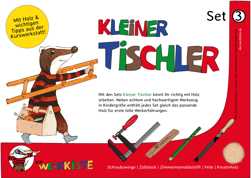 Mit dem Set 3 können Kinder ab 6 Jahren eigenständig und sicher arbeiten. Die enthaltenen Werkzeuge sind speziell auf kleine Hände abgestimmt und fördern die Feinmotorik und Kreativität. Dieses Set ist ein hervorragender Einstieg in die Welt des Handwerks und bietet unzählige Möglichkeiten, das Holzwerken für Kinderspannend und lehrreich zu gestalten.