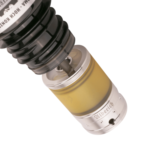 Der Alberich MTL RTA hat eine sagenhafte Liquidkapazität von maximal 4 ml und lässt sich bequem über das griffige Top-Fill-System befüllen. Zur Anpassung des Zugwiderstands stehen dir insgesamt 6 verschiedene Airflow-Pins zur Verfügung, die du mühelos an der Unterseite des Verdampfers austauschen kannst.