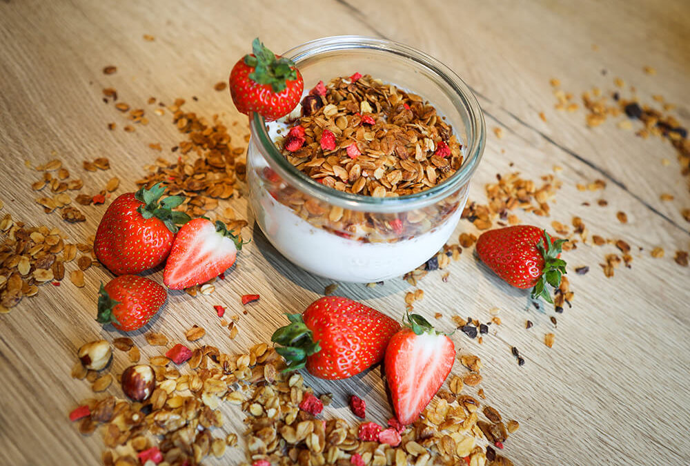 Teste dich mit der kleinen Probiertüte durch unsere Knuspermüslis. Die Menge ist perfekt als Snack, Topping oder mit einem Klecks Naturjoghurt.