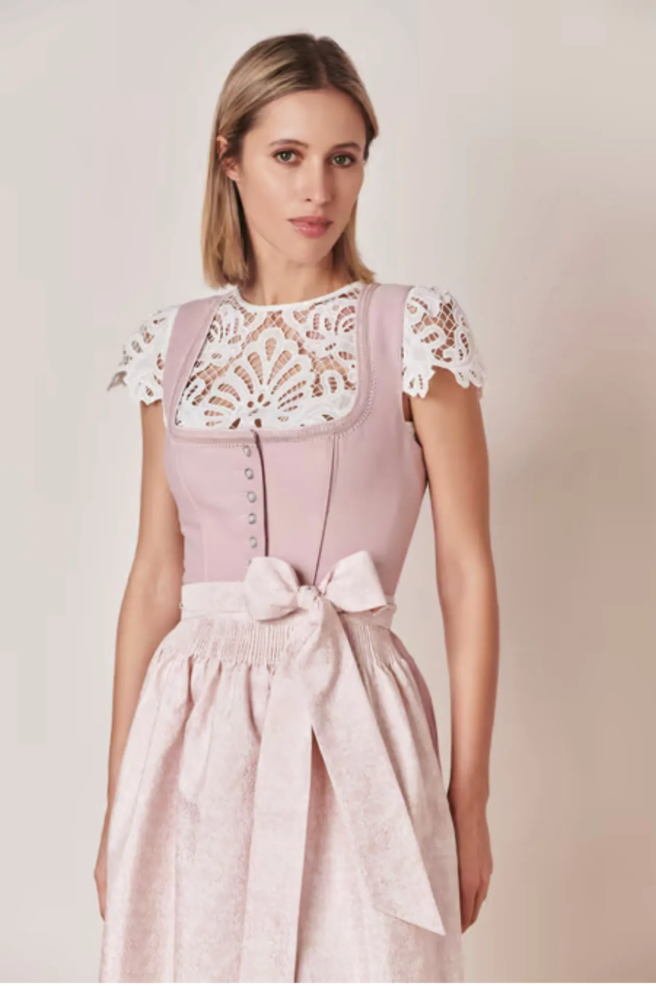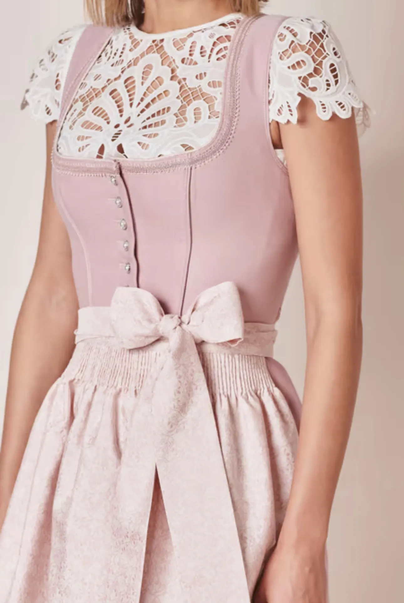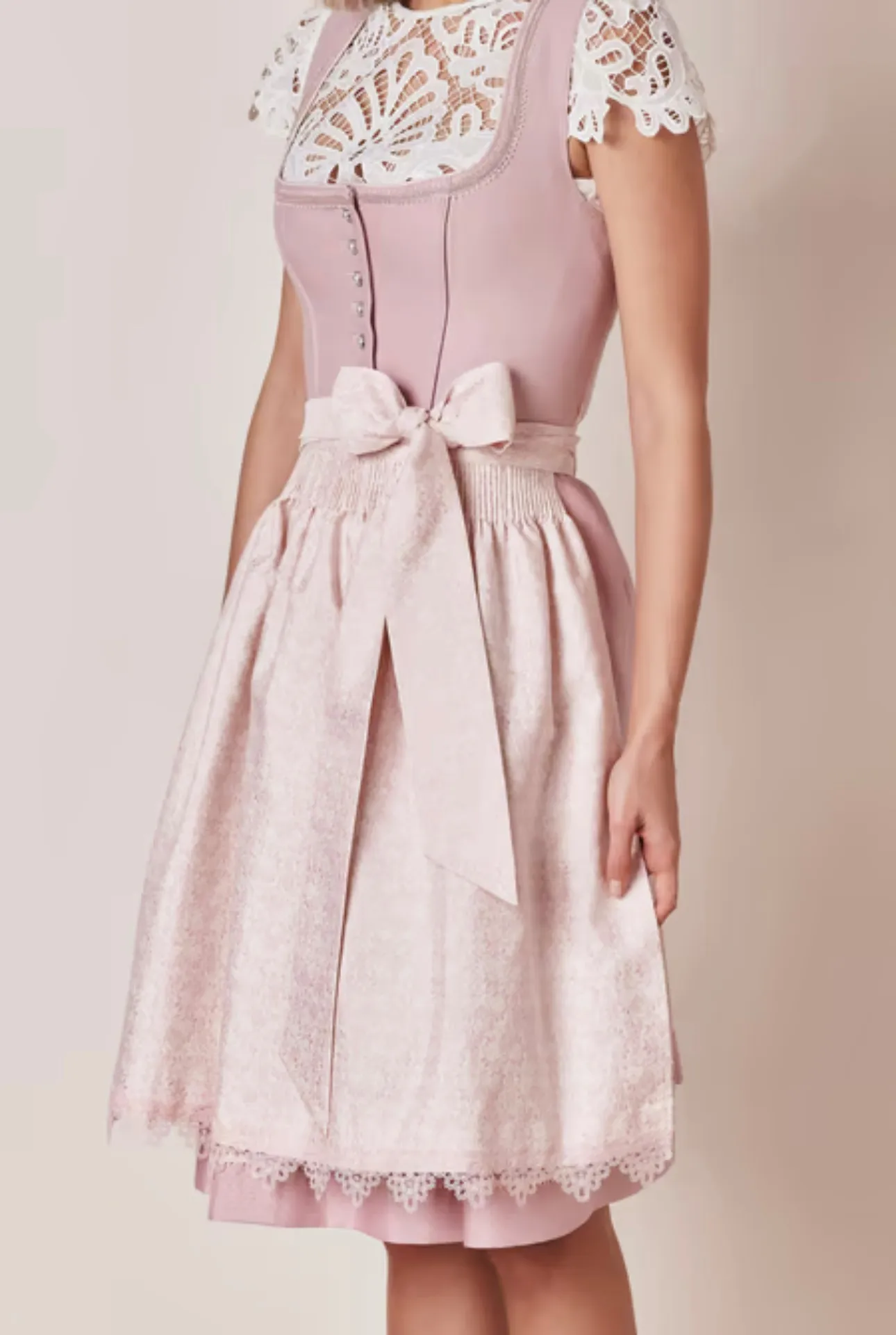 Ein wunderschönes Kurzdirndl in dezenter Farbgebung, der tolle Schnitt und die vielen liebevollen Details zaubern jeder Trägerin ein Lächeln ins Gesicht.