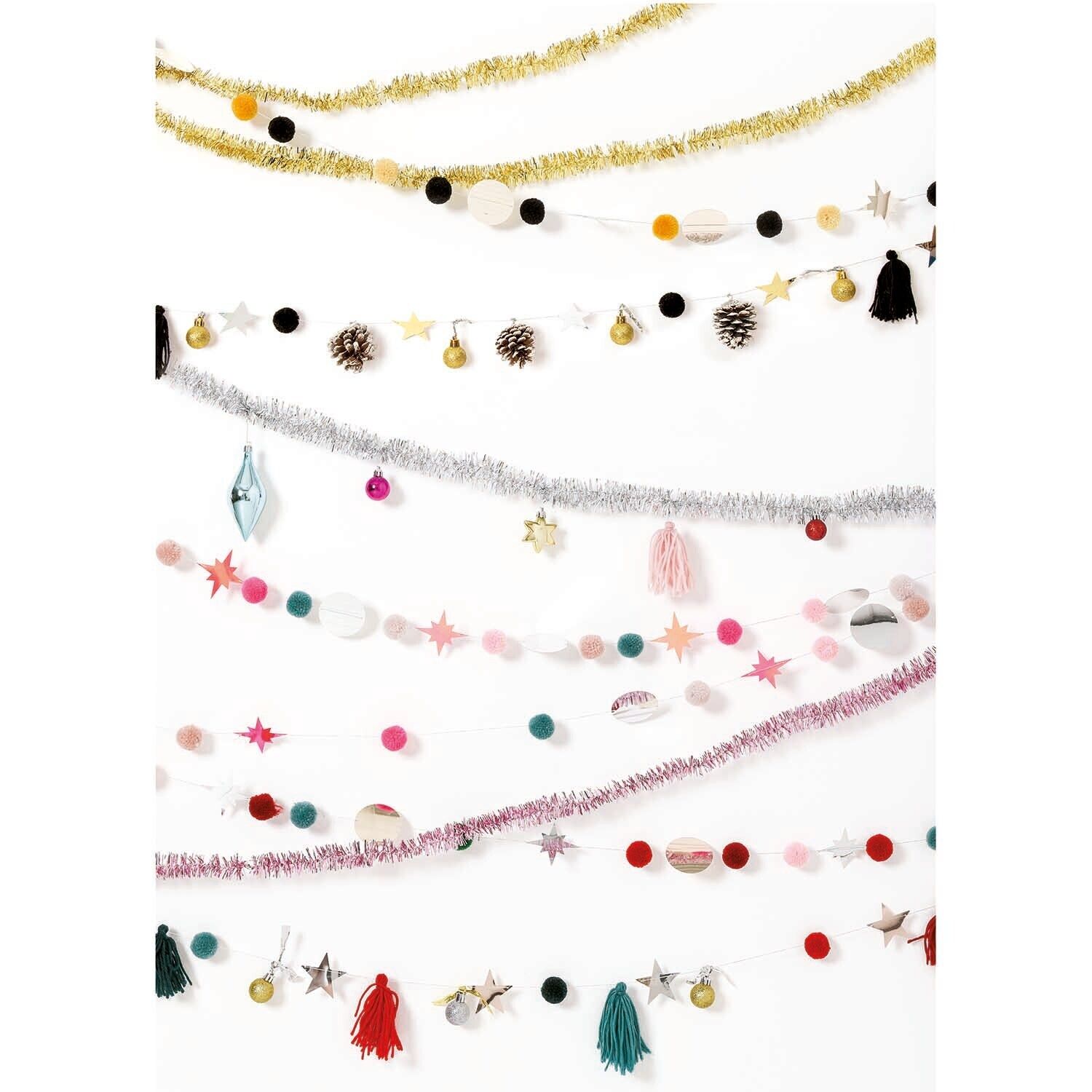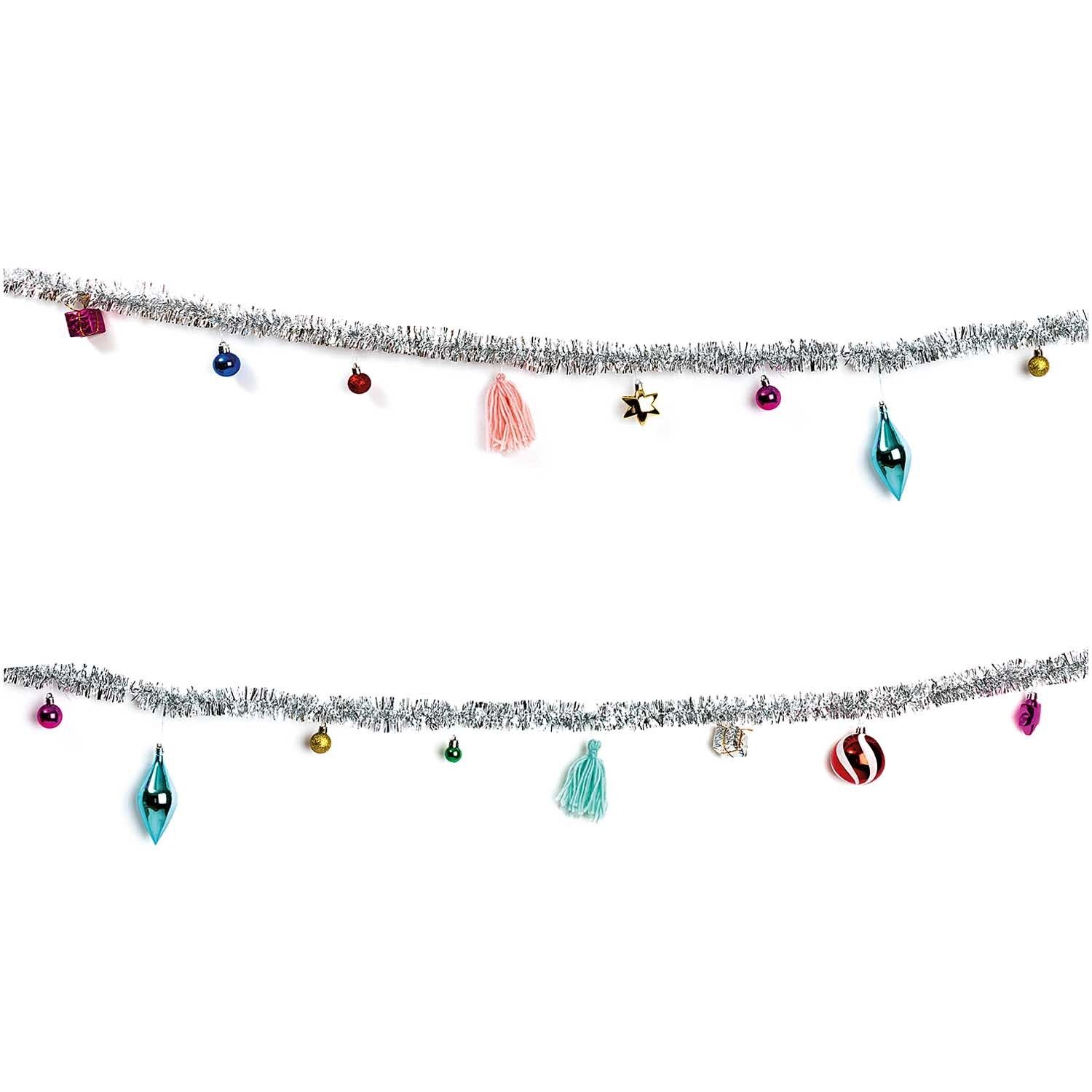 Lametta-Girlanden sorgen für den letzten Schliff in Ihrer Weihnachtsdeko! Diese Girlande hat eine Länge von 2,5 Metern und bietet Accessoires wie Kunststoffkugeln in unterschiedlichen Farben und Formen, kleine Geschenkpäckchen und stylishe Garnquasten. Die Girlande mit Dekor kann mehrfach verwendet werden. Lagern Sie die Girlande nach Weihnachten einfach in der stabilen PET-Bosx wieder ein. Die Lametta-Girlande eignet sich perfekt als Deko am Weihnachtsbaum oder am Weihnachtskranz. Durch ihr schimmerndes Material versprüht die Girlande eine festliche Stimmung.