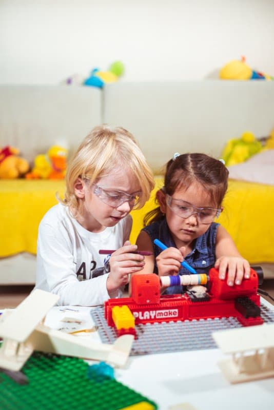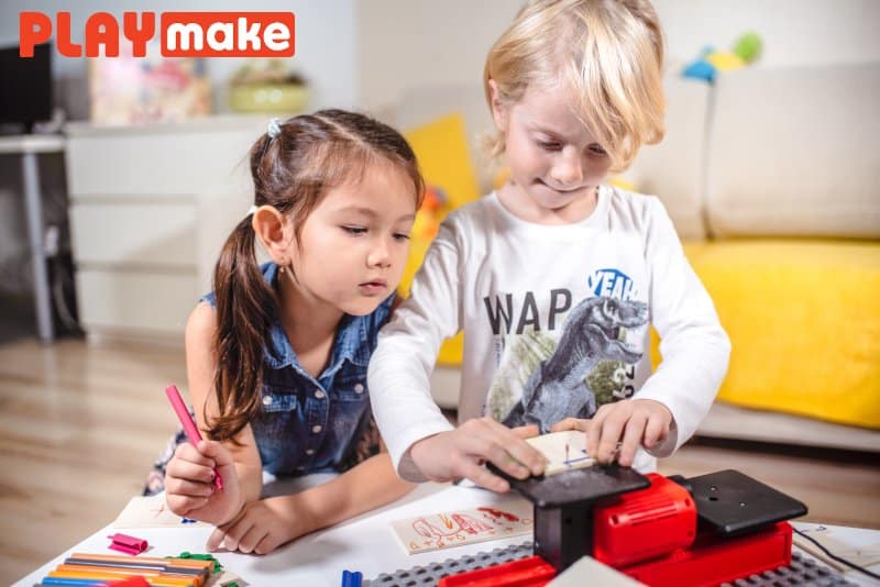 Übrigens, die Playmake ist die weiterentwickelte Form der Playmate. Alles ist etwas größer und robuster und diese Maschine lässt sich auf einer Lego Duplo Platte befestigen.