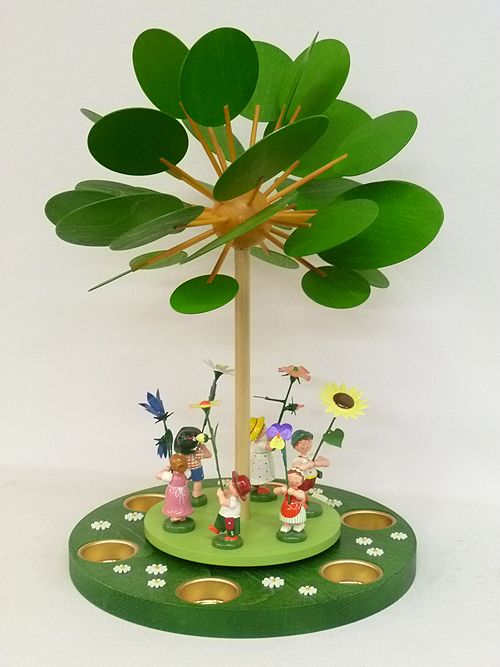 Mit dieser Pyramide “Frühlingserwachen mit Blumenkindern” für Teelichter bekommen Sie den Frühling direkt ins Haus geliefert. Mit dem neuen Design und den putzigen Blumenkindern erhalten Sie ein etwas andere Pyramide. Im Mittelpunkt steht ein Frühlingsbaum dessen runde Blätter so angeordnet sind das sich die Blumenkinder mit Ihm drehen.