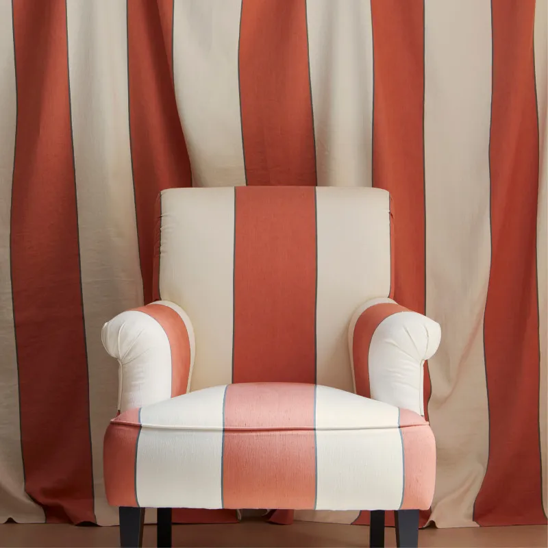 Rayure Massalia ist ein breiter Streifen mit dem süßen Duft des Sommers am Meer und ist in 7 sommerlichen Farben erhältlich. Dieser breite Vorhang kleidet den Raum elegant ein und bietet einen weichen und üppigen Faltenwurf. Diese große Breite kann in beide Richtungen verwendet werden.