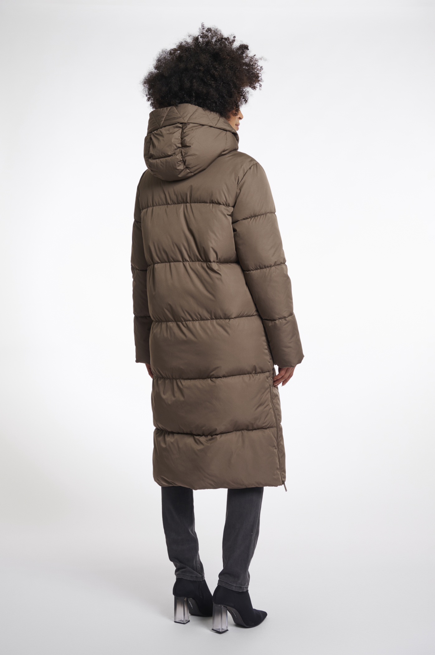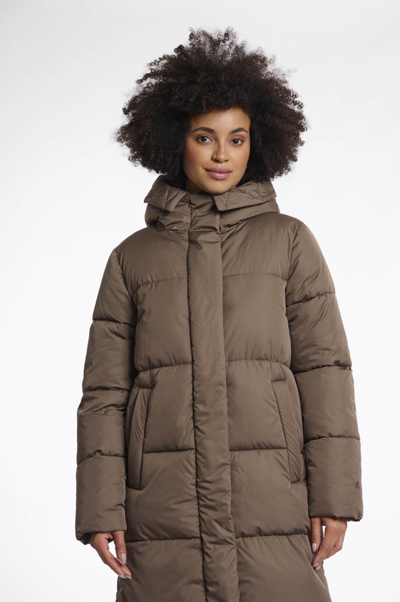 Rino & Pelle Mantel “Tessa Dark Toffee” . Entdecke diesen langen, wattierten Mantel – eine vielseitige und kuschelige Oberbekleidung für die kälteren Monate. Dieser Mantel besticht durch sein auffälliges grafisches Design auf der Innenseite, das einer klassischen Silhouette eine einzigartige Note verleiht. Ausgestattet mit einem Reißverschluss und Druckknopfverschluss, einer Kapuze mit Kordelzug, Seitentaschen mit Reißverschlüssen, Seitenschlitzen mit Reißverschlüssen und einer Innentasche, verbindet dieser Mantel nahtlos Stil und Funktionalität für Ihre Wintergarderobe.