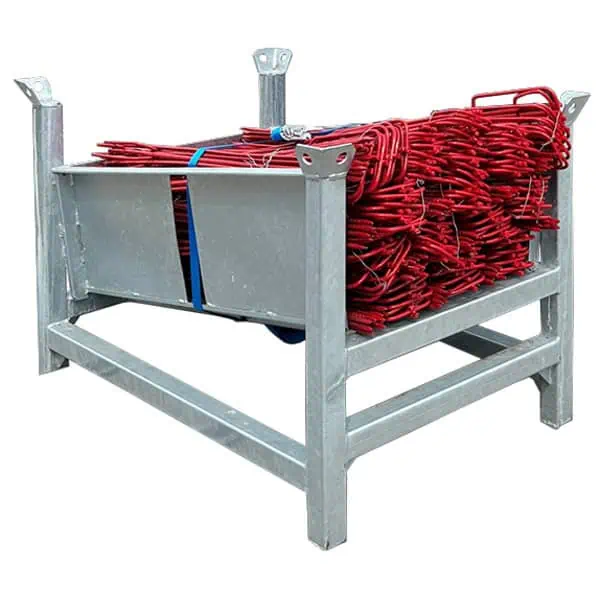 Enthält 150 Absperrleinenhalter Ø 12 mm auf robuster Lagerpalette – ideal für mittlere Absperrmaßnahmen.