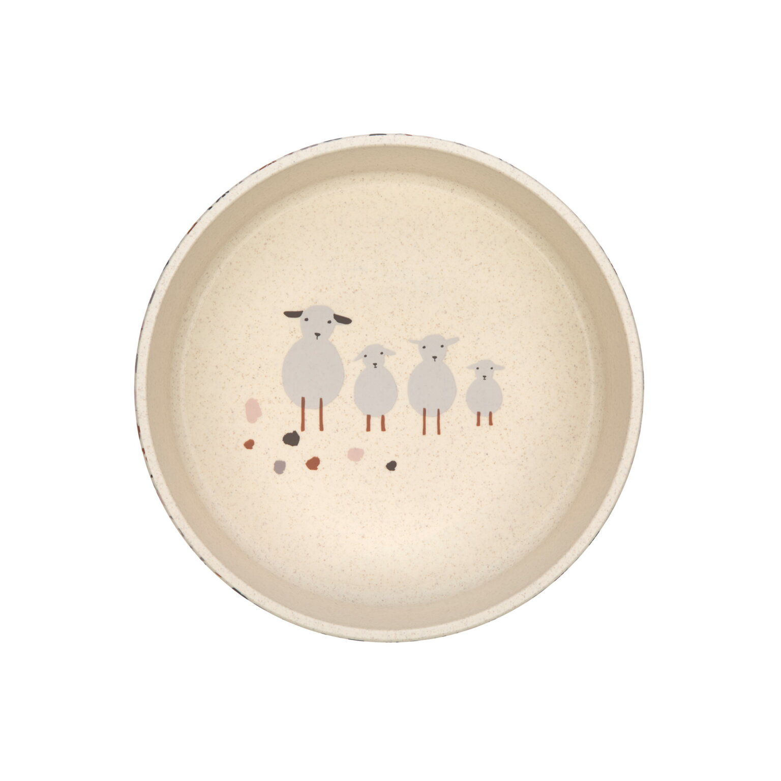 Zur Kindergeschirr Kollektion Tiny Farmer von LÄSSIG gehört die Schüssel mit den flauschigen Schafen.