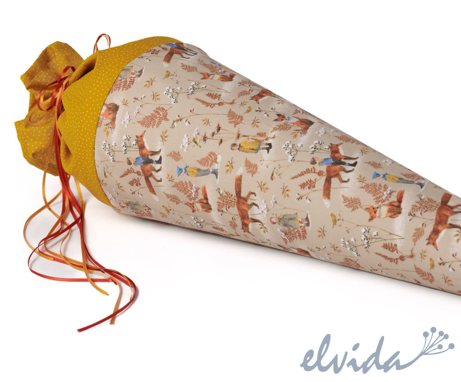 Dies ist eine Schultüte aus unserer Sonderkollektion: Feen, Elfen und Fabelwesen mit den Stoffen von Daniela Drescher aus dem Hause Acufactum.