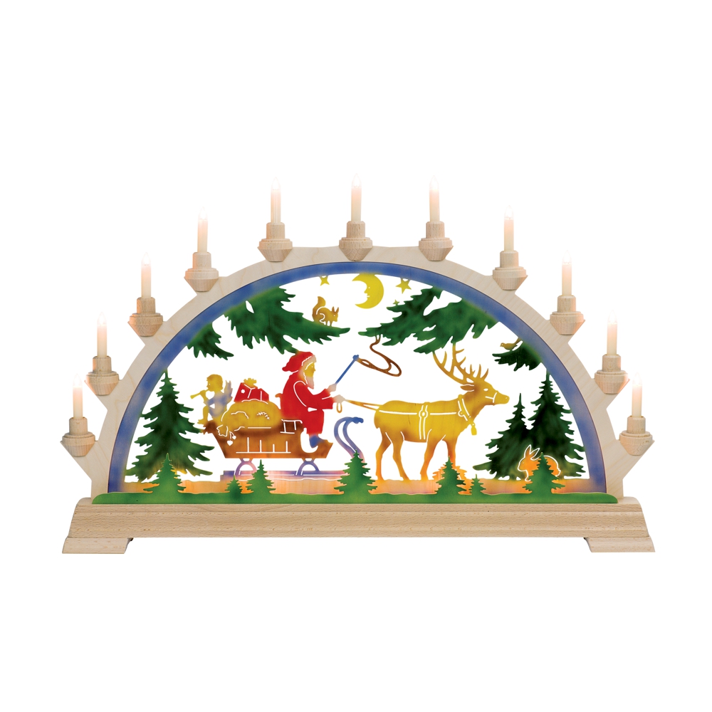 Dieser Schwibbogen Nikolaus mit Schlitten, farbig ist ein weiterer schöner Bogen aus dem Hause Taulin.