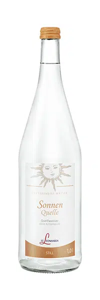 Die Sonnenquelle trägt ihren Namen aufgrund bioenergetischer Messungen, die eine hohe Frequenz im Bereich des Herzens zeigen. Die warme Orange der Etiketten symbolisiert die Sonne im Herzen, was bei St. Leonhards täglich an die Leichtigkeit und Positivität des Lebens erinnert.
