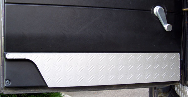 Jeder kennt das Problem, beim ein und aussteigen verschmutz man die Innenverkleidung der Türe, durch diesen Riffelblechschutz mit alu natur eloxierter Oberfläche ist die Innenverkleidung geschützt und ist leicht zu reinigen, aus 1,5/2mm Alu Riffelblech. Anbringung durch kleine Blechtreibschrauben oder gutes doppelseitiges Klebeband, nicht im Lieferumfang enthalten. Satz= 2 Stück