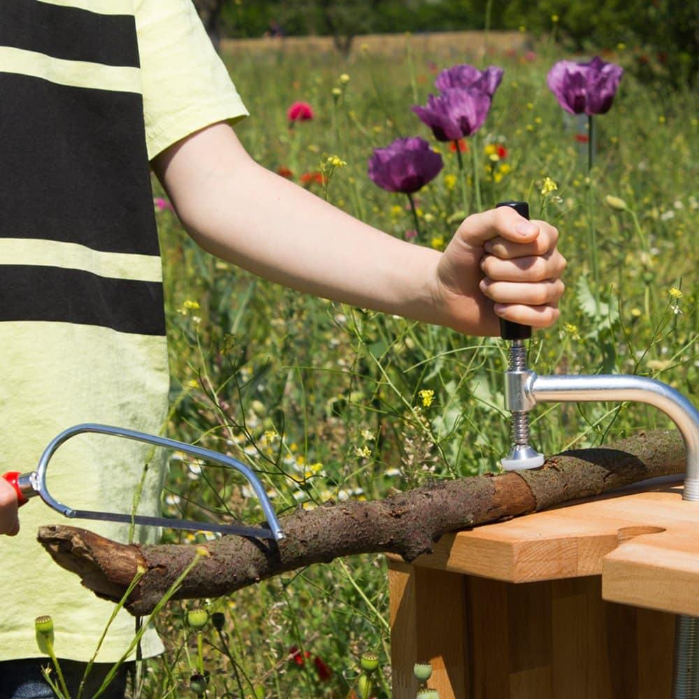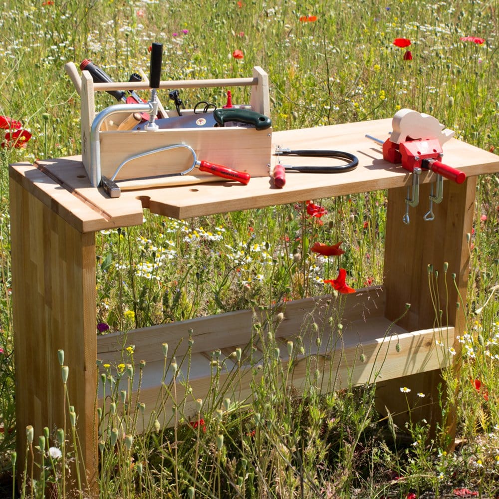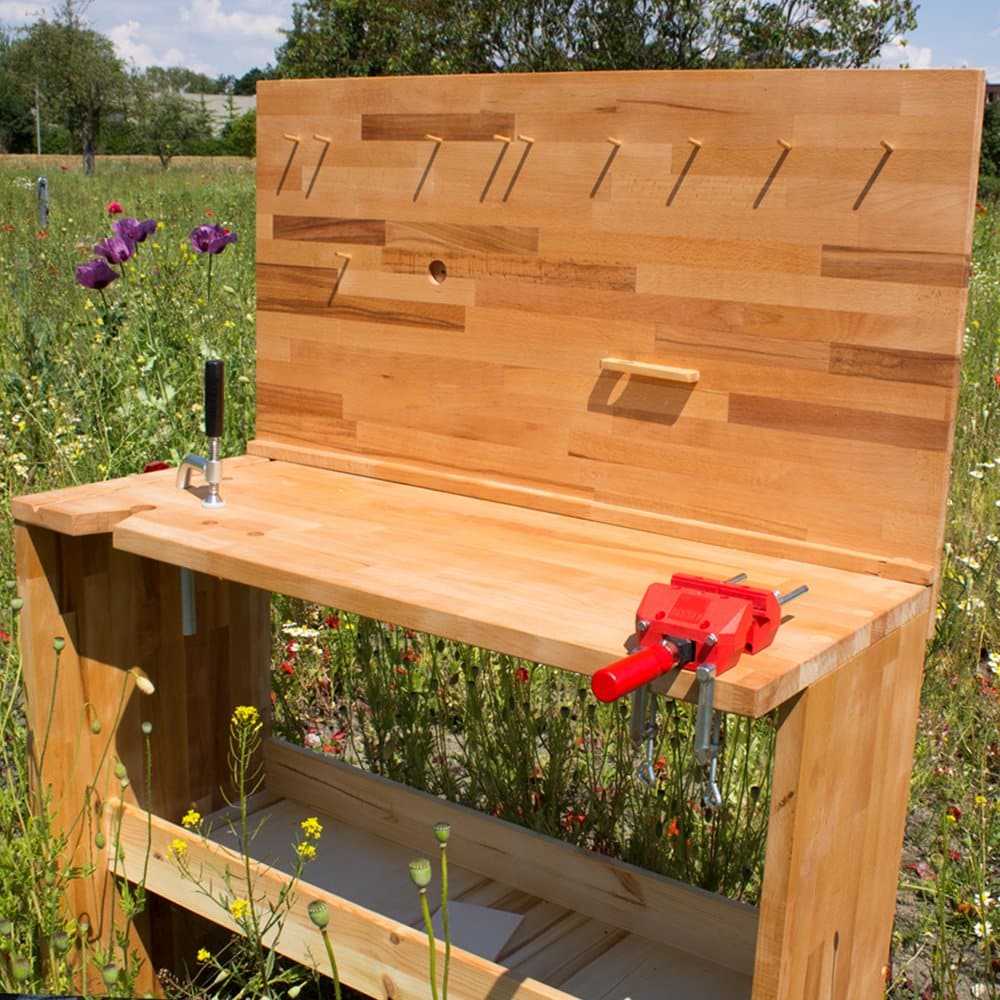 Designerwerkbank aus der Werkdachsmanufaktur – durchdacht bis ins letzte Detail. Die Kinderwerkbank ist vor allem eins: funktional. Aus der Erfahrung des Werkens mit Kindern in unserer Kurswerstatt sind viele praktische und sicherheitsrelevante Details in die Konstruktion eingeflossen. Besonders wichtig ist uns die stabile und wackelfreie Konstruktion sowie sichere Befestigungsmöglichkeiten für Werkstücke.