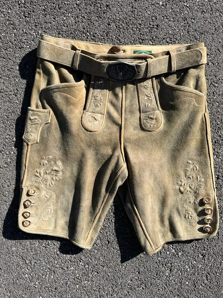 Unser heuriges Modell überzeugt durch klassische Motive aus tollem Ziegenvelour in unheimlich schöner Qualität. Der wunderschöne Beigeton passt ideal zu allen Gilets – kombiniert mit feschen Lederhosenstutzen ein Highlight in dieser Saison! Inklusive wunderschönem Gürtel!