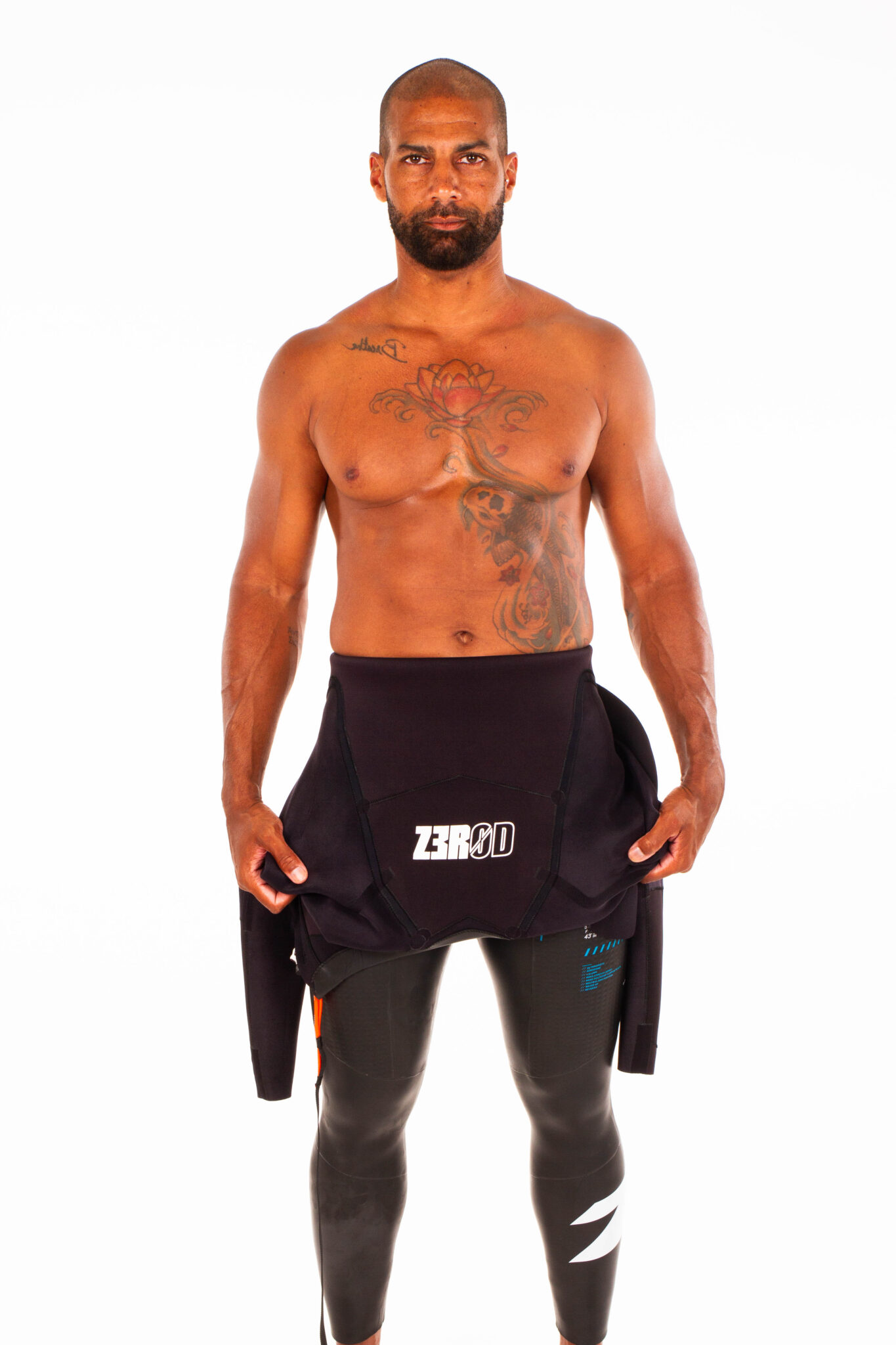 Dieser Neoprenanzug besteht vollständig aus Yamamoto #38, #39 & #39 AERODOME Neopren, dessen Dicke je nach Körperteil zwischen 1,5 und 5 mm variiert.
