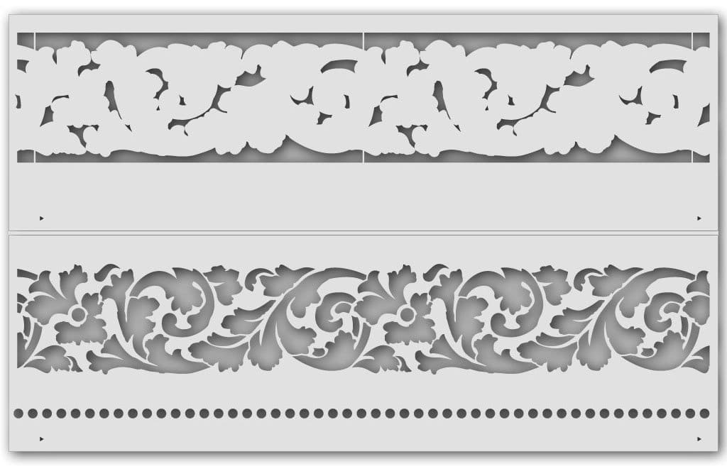 Anwendung: Mit nur einer Schablone (als endlose Wandbordüre mit Passermarken versehen), Farbe und dem passenden Werkzeug lassen sich komplette Raumgestaltungen realisieren, die Ihre persönliche Handschrift tragen. Unsere Beispiel-Farbgestaltungen in unserem Shop werden Ihre Kreativität beflügeln. Dabei können Sie mit der Schablonentechnik u. a. Dekobjekte, Möbel, Stoffe und beliebige Accessoires verschönern. Bitte nutzen Sie unser umfangreiches Zubehör (italienische Schablonenfarbe, Pinsel und ggf. Haftmittel u.v.m.) für ein perfektes und immer wiederholbares Ergebnis und beachten unsere Anwendungshinweise.