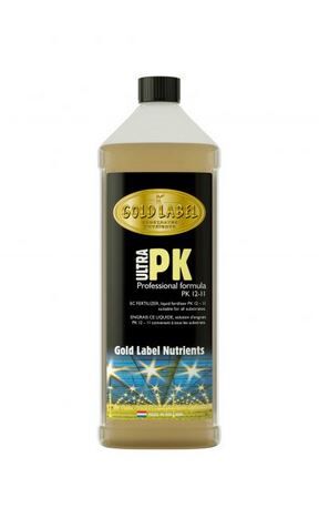 Gold Label Ultra PK ist ein Zusatz, der auch Polyphosphaten und chelatgebundenen Spurenelementen basiert und ist für Blütenpflanzen geeignet. Gold Label Enzymes ist ein professionelles hochkonzentriertes Enzym, dass zusätzlich benutzt werden kann und basiert auf natürlichen Enzymen. Benutzen Sie Gold Label Enzyme einmal die Woche, 0,1 l/Liter oder je nach Zeitplan.